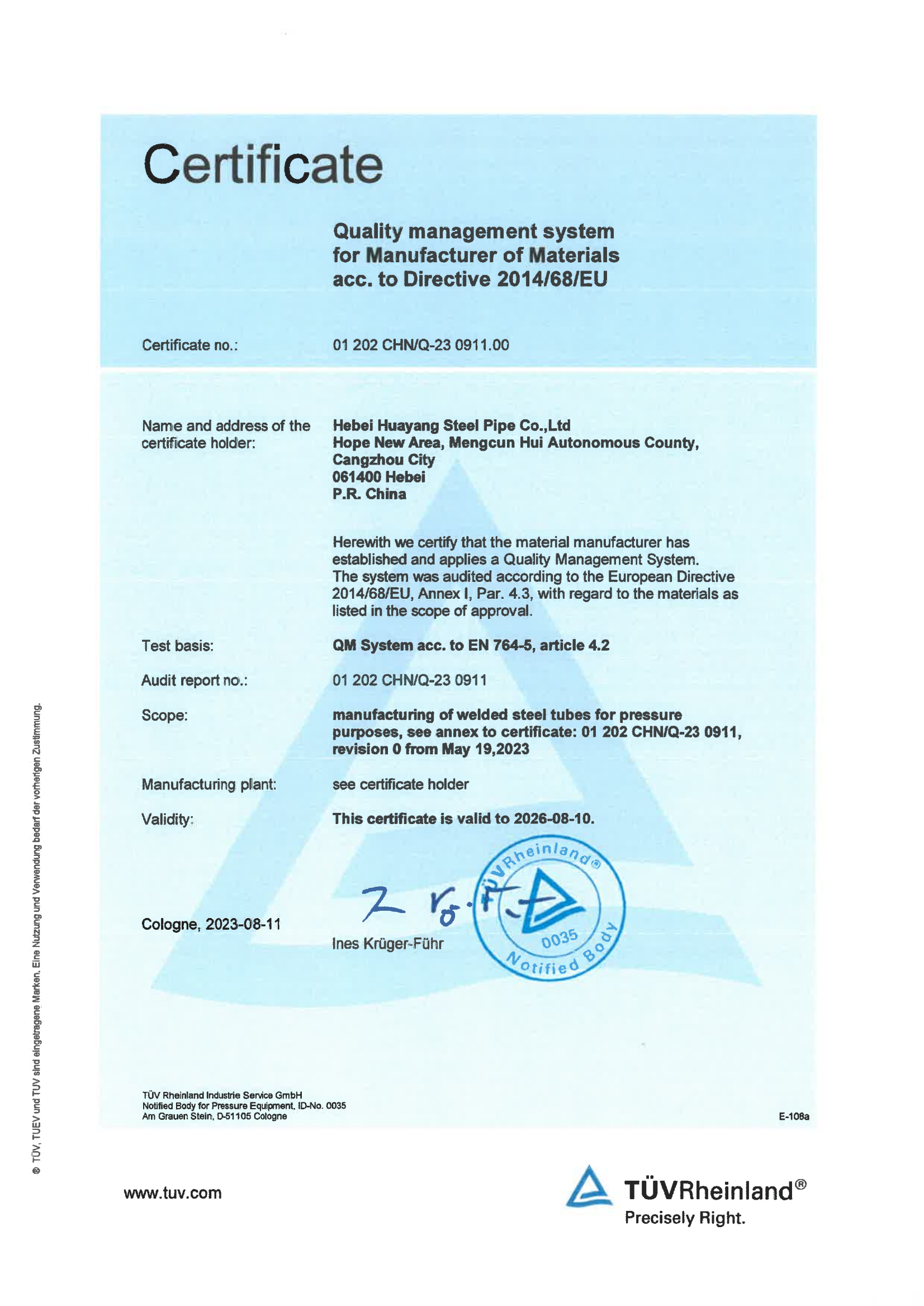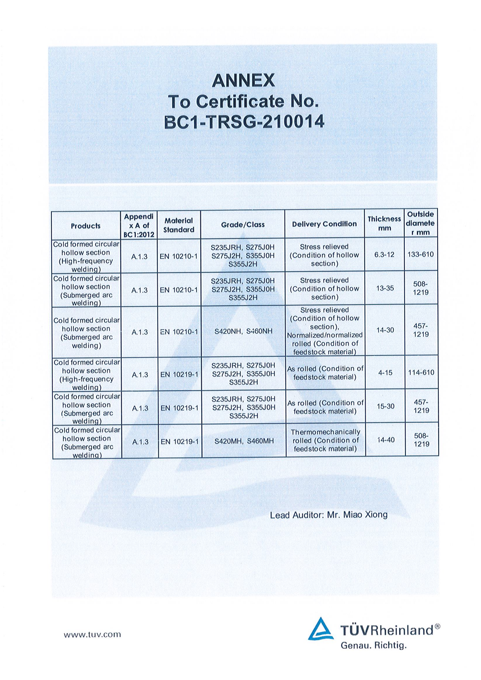 公司現有17條新型的自動化鋼管生產線,包括Φ73-660.4高頻直縫焊鋼管生產線14條、Φ406.4-Φ1422.4直縫雙面埋弧焊鋼管生產線3條,并配備有一條防腐生產線,可進行3PE、2PE、FBE、2PP、3PP防腐處理,同時還可提供鋼管深加工服務。公司擁有先進的理化實驗室,可承擔鋼管的各項物理及化學檢測與試驗。公司先后取得了ISO9001質量管理體系認證、ISO14001環(huán)境管理體系認證、ISO45001職業(yè)健康安全管理體系認證、特種設備制造許可證、API5L和API2B認證證書、歐盟CE認證、俄羅斯GOST認證、中海油入網證、安全生產標準化二級企業(yè)等標準質量體系認證。